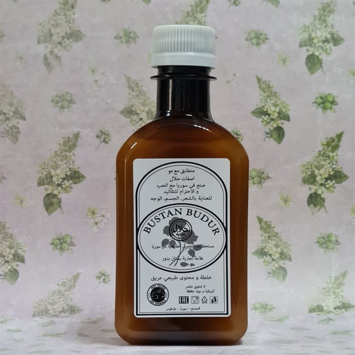 Состав: Оливково-лавровая эмульсия сорта оливки Абу-Саттль, гель алоэ, масла: семян кресс-салата (Lepidium sativum), рапса, карите ручное, оливки прямого отжима, масло семян сирийского черного тмина (Nigella Sativa), масло семян черного эфиопского тмина (Nigella Sativa), масло листьев оливки Olea Europaea сирийский сорт Kaissy и её камедь, листьев готукола (Trisanthus cochinchinensis), семян чабера садового (Satureja hortensis), млечный сок одуванчика кок-сагыз (Taraxacum kok-saghyz), масло семян крамбе абассинского (Crambe abyssinica), пудра коры Сарака Индийская (Saraca indica), пудра коры харитаки термилия чебула (Terminalia chebula), перетертая масса из семян черного тмина сирийского (Nigella Sativa), масло монарды, гидролат черного тмина, гель стеркулии, гидролат корня сарсапариллы (Smilax officinalis), пудра природной смолы дамарра (Agathis dammara), живица фисташкового дерева, живица пихтовая Ábies.