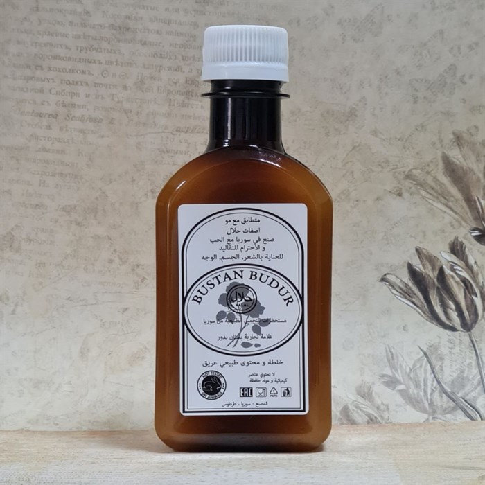 Состав: оливковая эмульсия из оливок сорта Абу-Саттл (Olive Emulsio), масло лавра благородного, масло розы дамаска, масло цедры апельсина горького (померанца) Cítrus aurántium, масло цедры кафир-лайма Citrus hystrix, вытяжка из плодов и семян помело Citrus maxima, порошок и масло корневища женьшеня трехлистного Panax trifolius, масло листьев плюща колхидского Hedera colchica, масло соцветий клематиса остролистного Clematis aristata, воск жожоба Jojoba, гидролат душицы сирийской Origanum syriacum L., натуральный гель Алоэ-вера Aloe, оливковое масло прямого отжима, масло мускуса растительного из корня ангелики Angelica archangelica, ядра фисташки палестинской (Pistacia palaestina), миндальное молоко, протеин зародышей пшеницы (Triticum vulgare), гидролат алоэ-вера, смола корня одуванчика Taraxacum, масло семян сасанквы Camellia sasanqu, семян пажитника бейрутского (Trigonella berythea), семян мака восточного (Papaver orientale), гидролат розы, фито-флюид сока кактуса опунции, фитофлюид сока маракуйи, слизь улитки Helix Aspersa, слизь стеркулии, воск соевый, воск цветочный, масло смолы копала Humenaea courbaril, природная смола ладан отборный региона Дофар, Оман (Olibanum electum).