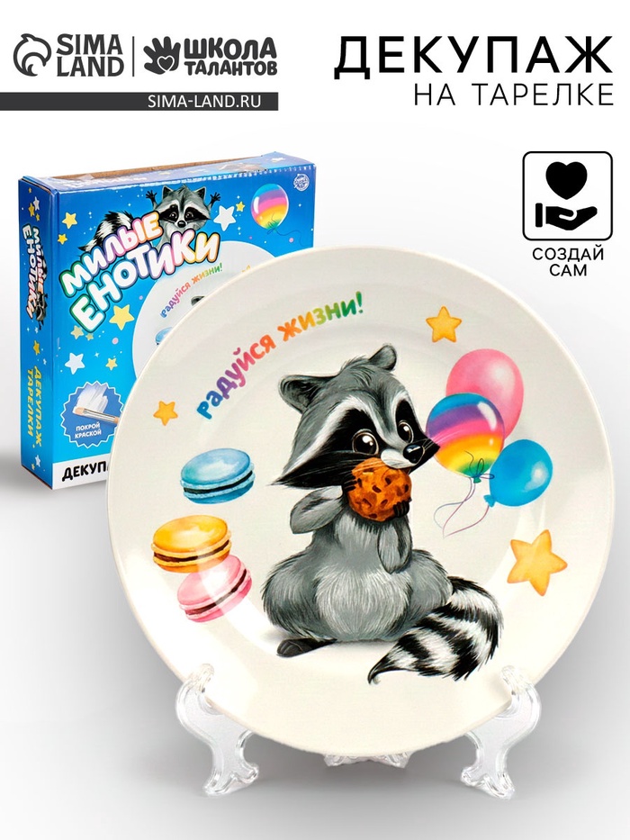 Набор для творчества «Декупаж тарелки: енотик» — это увлекательное занятие для детей от 3 лет, которое поможет развить важные навыки.