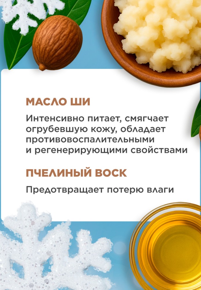 Универсальный крем для лица, рук и тела создан специально для интенсивного ухода за кожей в период холодов. Смягчает и питает даже самую чувствительную кожу, устраняя сухость и шелушения. Делает кожу мягкой и бархатистой.