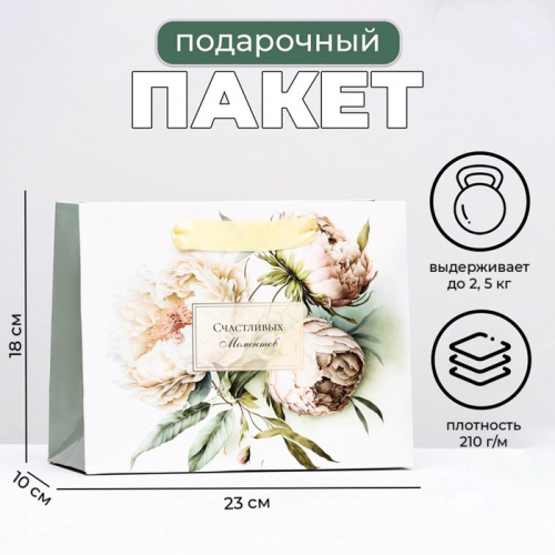 Пакет подарочный ламинированный горизонтальный «Милые пионы», 23×18×10 см