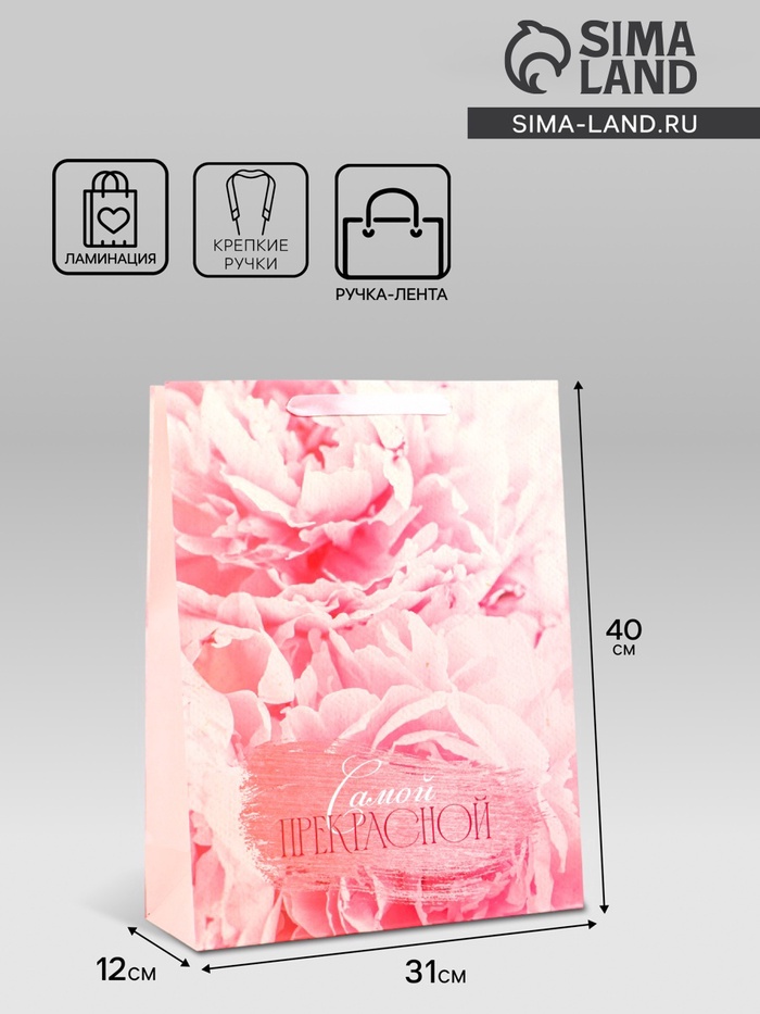 Этот яркий и праздничный подарочный пакет станет идеальным выбором для поздравления девушки на 8 Марта! Вертикальный формат пакета позволяет удобно разместить различные виды подарков, такие как косметика, украшения или книги.
