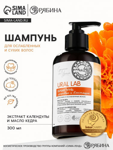 Шампунь для сухих и ослабленных волос с маслом кедра и экстрактом календулы, здоровые и блестящие, 300 мл, ECO LAB by URAL LAB
