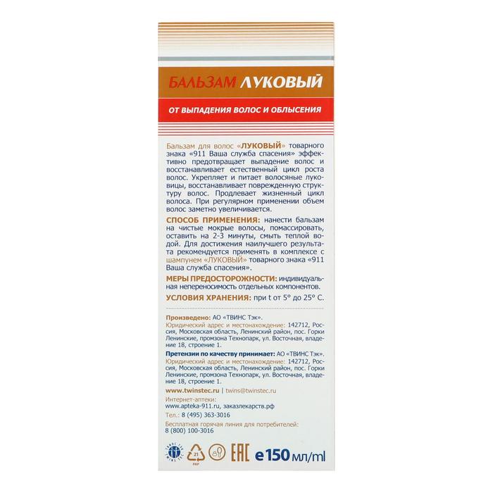 Бальзам «911 Луковый», от выпадения волос и облысения, 150 мл