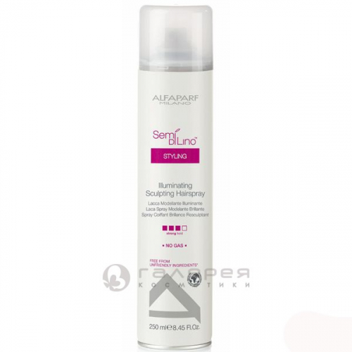 Лак для моделирования и укладки волос, придающий блеск – создан на основе уникальных и эксклюзивных формул, что гарантирует его безупречное действие. Данное средство не содержит в своём составе красителей, парафинов, парабенов, минеральных масел и пропеллент. Лак для моделирования Альфапарф Illuminating Sculpting Hairspray предназначен для сильной фиксации волос, придавая им объём и при этом сохраняя их натуральный блеск, а также надёжно оберегая причёску от каких-либо вредных воздействий окружающей среды. После применения данного средства волосы остаётся лёгкими и воздушными, а также естественными в движении. Alfaparf Semi Di Lino Illuminating Sculpting Hairspray подходит для всех типов волос.