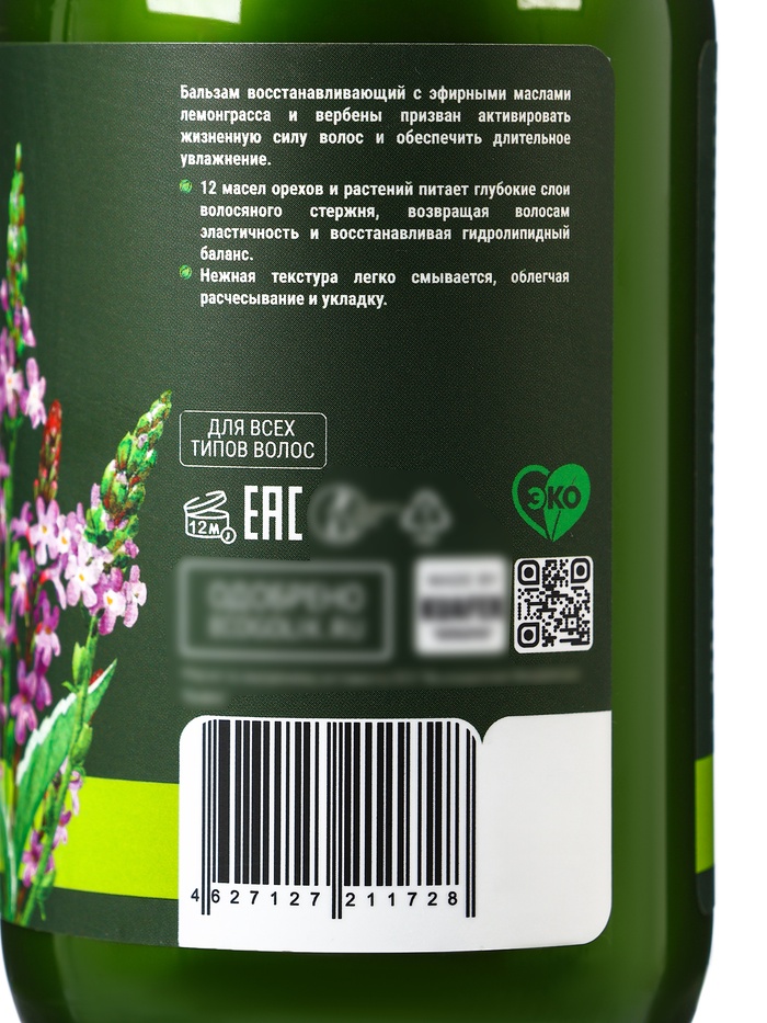 Бальзам Biodepo, обогащенный маслами лемонграсса и вербены, активирует жизненную силу волос, укрепляет их текстуру и обеспечивает длительное увлажнение. Входящая в состав бальзама уникальная комбинация из 12 масел орехов и растений питает глубокие слои волосяного стержня, восстанавливая их эластичность и естественный гидро-липидный баланс. Нежная текстура легко смывается, облегчая расчесывание и укладку.