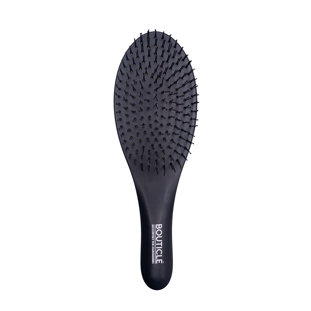 BOUTICLE ( Бутикле ) Разработана для применения в процедурах по уходу и восстановлению волос, а также для ежедневного ухода за сухими и влажными волосами. Двойные щетинки разной длины, мягко скользят по волосам, распутывая даже самые непослушные волосы.