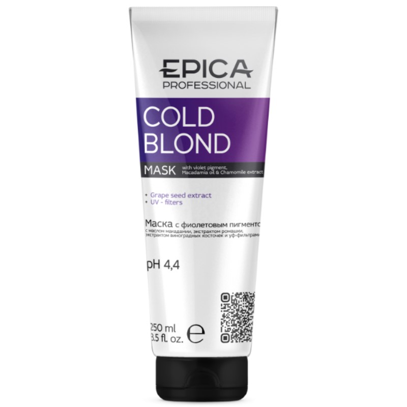 EPICA Cold Blond / Маска с фиолетовым пигментом с маслом макадамии и экстрактом ромашки, 250 мл