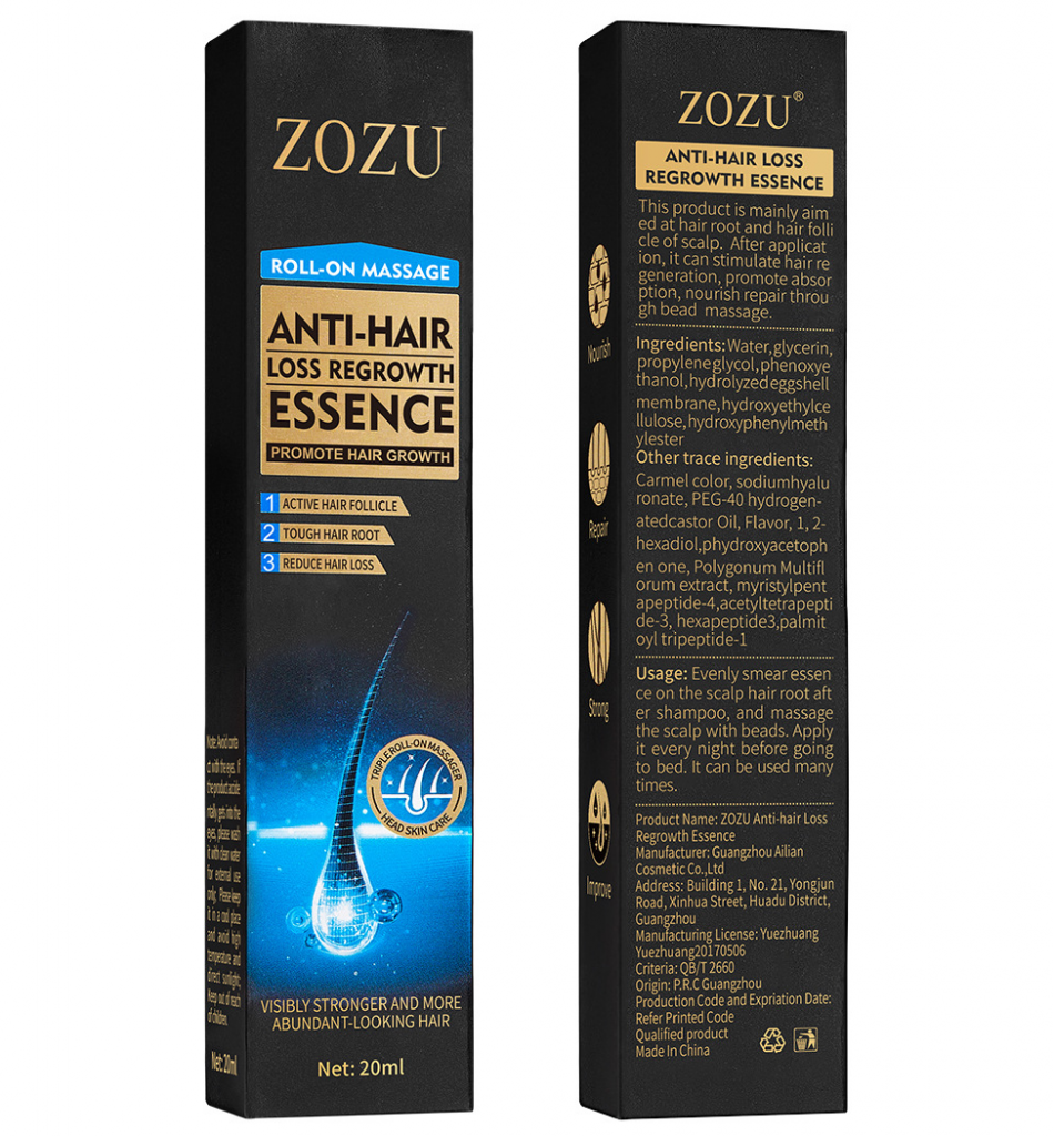 Способ применения: Равномерно распределить лосьон на корни волос и массировать кожу головы роликовым аппликатором. Наносить каждый день перед сном.ми роликами Zozu Anti-Hair Loss Regrowth Essence укрепляет структуру волоса, стимулирует клеточный метаболизм, обеспечивает интенсивное питание волосяного фолликула и борется с максимальным количеством факторов, провоцирующих выпадение волос. Массажные ролики улучшают кровообращение кожи головы и питание волосяных луковиц, что способствует стимулированию роста волос.