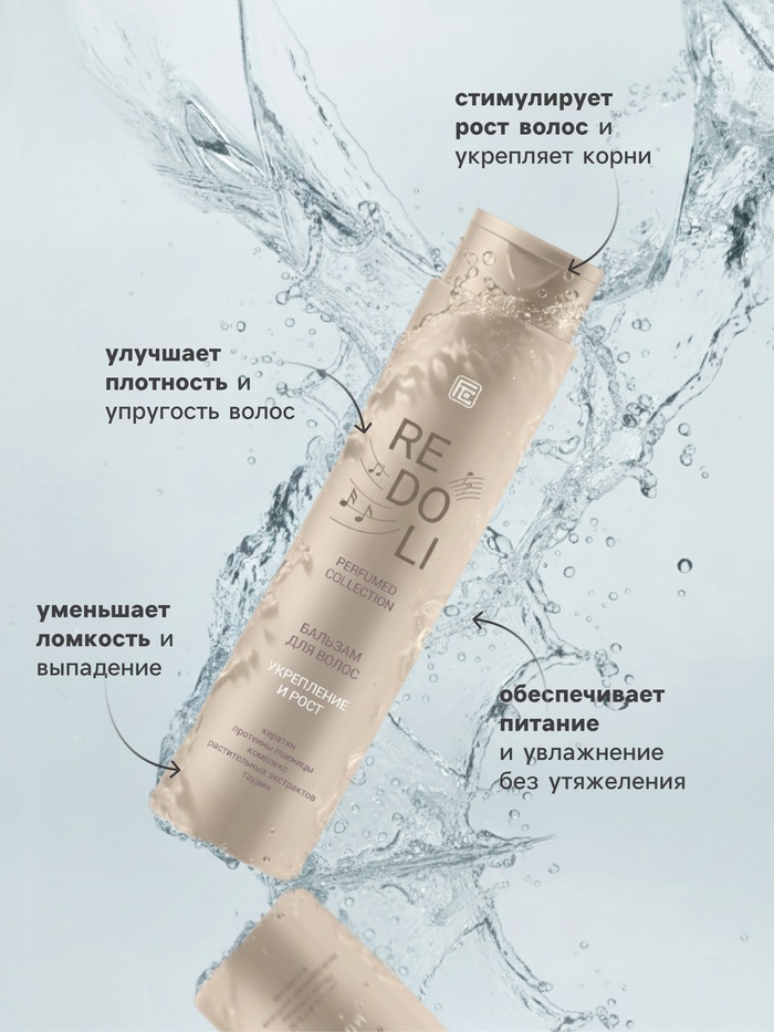 Бальзам «Укрепление и рост» серии REDOLI создан для ухода за ослабленными и склонными к выпадению волосами. Средство питает и увлажняет волосы, укрепляет их структуру, стимулирует рост новых волос и делает локоны более здоровыми и сильными. Аромат розового перца и лимона дарит волосам свежесть и ощущение ухоженности.