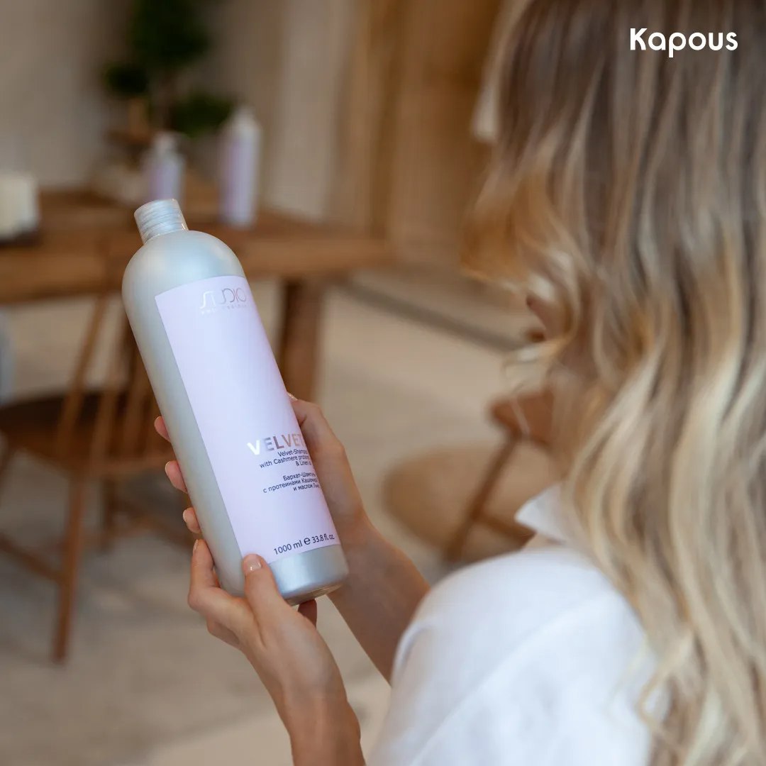 KAPOUS Бархат-Шампунь с протеинами кашемира и маслом льна серии "Luxe Care", 1000 мл
