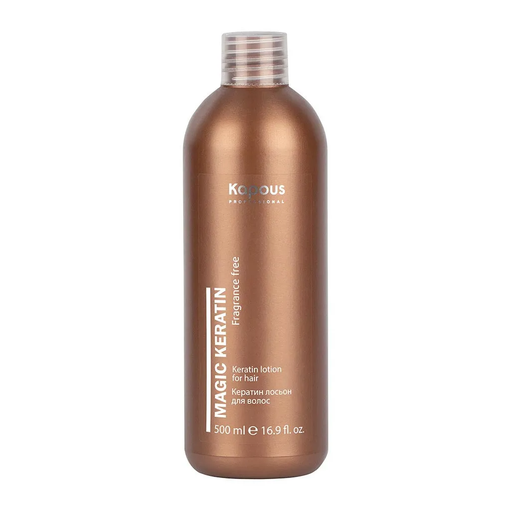 Кератин лосьон «Magic Keratin» - препарат специального действия, предназначенный для интенсивного ухода за волосами. Рекомендуется для восстановления волос сразу же после химических процедур (окрашивания, обесцвечивания и тонировавания, химической завивки), защиты от негативного воздействия внешней среды, а также в качестве лечения поврежденных волос. Благодаря высокой концентрации кератина, который глубоко проникает в структуру волос, укрепляются ослабленные кератиновые соединения на молекулярном уровне, волосяные луковицы дополнительно снабжаются питательными веществами. Входящий в состав Пантенол оказывает восстанавливающее действие, усиливает блеск, возвращает эластичность, облегчает расчёсывание. Экстракт подсолнуха включает в состав насыщенные жирные кислоты и значительное количество витамина Е, которые разглаживают кутикулу и восстанавливают целостность волос. Гармоничное сочетание природных компонентов в составе лосьона способствует повышению тонуса кожи, волосы становятся крепкими, шелковистыми и послушными.