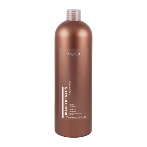 Шампунь «Magic Keratin» для уставших, утративших жизненную силу, химически выпрямленных или завитых волос, а также подверженных неоднократным процедурам окрашивания и обесцвечивания, предназначен для решения трёх важных задач: питание и восстановление, лечение поврежденных волос, защита. Комбинация мягких поверхностно-активных веществ деликатно очищает волосы от загрязнений, подготавливая к процедуре более интенсивного восстановления. Благодаря входящим в состав Кератину и фруктовым кислотам питает и защищает поврежденные волосы, придавая жизненную силу и тонус. Модифицированные фруктовые кислоты служат для смягчения волос, увлажняют и придают дополнительный блеск, кератин восстанавливает и придает эластичность. Полиненасыщенные аминокислоты обеспечивают необходимое питание коже головы, предотвращают скопление свободных радикалов.