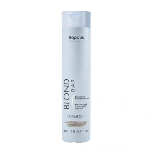 KAPOUS ( Капус ) Питательный оттеночный шампунь серии «Blond Bar» для придания и поддержания цвета волосам оттенков блонд. Содержащийся в составе экстракт Облепихи увлажняет осветлённые, обесцвеченные волосы и кожу головы; питает и защищает сухие и повреждённые волосы. Сбалансированный комплекс цветовых пигментов придаёт пепельный оттенок волосам.