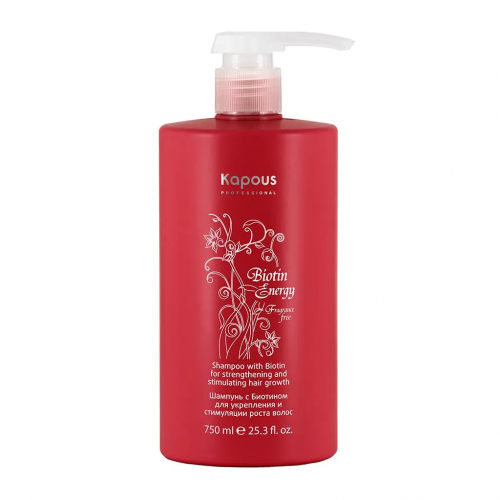 KAPOUS ( Капус ) Шампунь с биотином благоприятно воздействует на корни и кожу головы, уменьшает выпадение волос, восстанавливает структуру. Биотин участвует в производстве кератина, предотвращает выпадение волос и появление седины, активизирует процессы регенерации. Пантенол увлажняет, уплотняет волосы, натуральные экстракты придают силу и энергию.