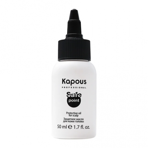 KAPOUS ( Капус ) Защитное средство «Safe Point» с маслами Абрикосовых косточек и Крамбе, обволакивает кожу головы и предотвращает от излишнего окрашивания. Масло не вступает в реакцию с красящей смесью и не влияет на конечный результат окрашивания.