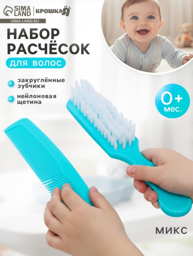 Расчёска детская + массажная щётка для волос, от 0 мес., цвета МИКС