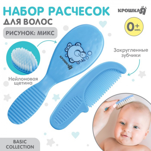 Набор подходит для первых волос малыша. Закруглённые зубчики расчёски и мягкий нейлоновый ворс не травмируют нежную кожу ребёнка.