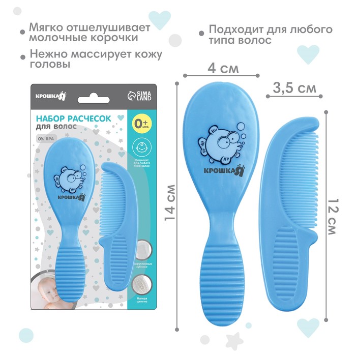 Расческа-щетка с мягкой щетиной и удобная расческа с закругленными зубчиками предназначены для малышей с первых дней жизни.