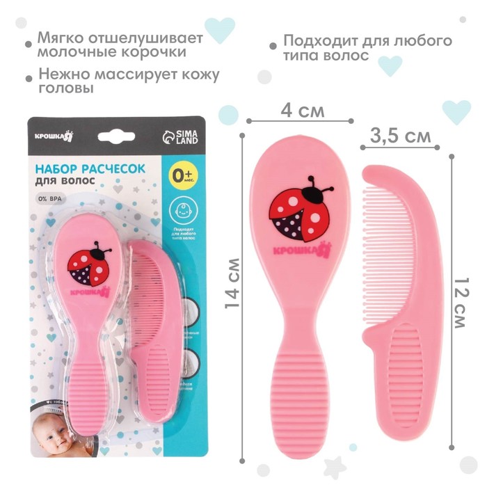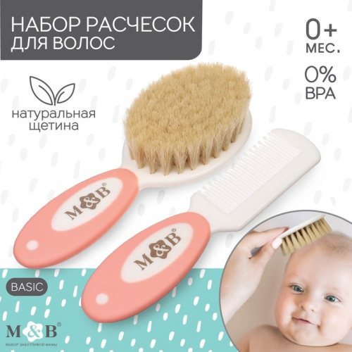 Набор подходит для первых волос малыша. Закруглённые зубчики расчёски и мягкий нейлоновый ворс не травмируют нежную кожу ребёнка.