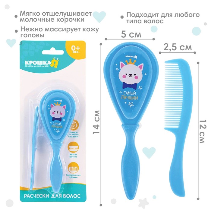 Расческа-щетка с мягкой щетиной и удобная расческа с закругленными зубчиками предназначены для малышей с первых дней жизни.