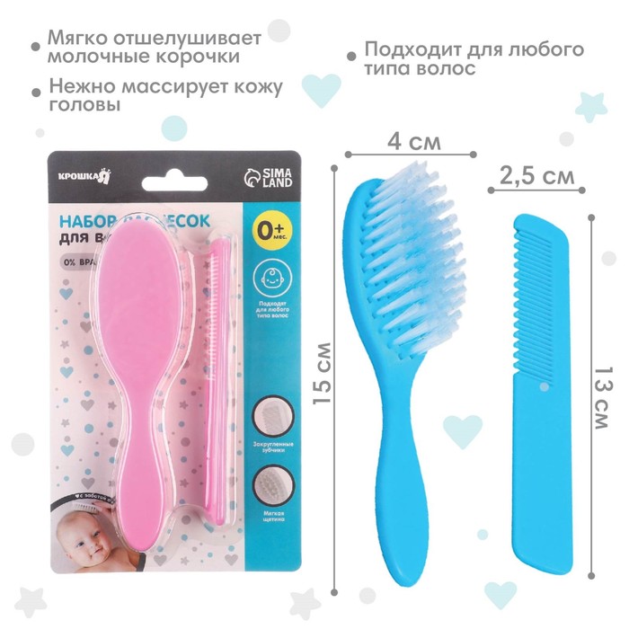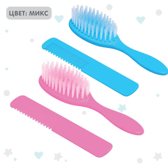 Набор подходит для первых волос малыша. Закруглённые зубчики расчёски и мягкий нейлоновый ворс не травмируют нежную кожу ребёнка.