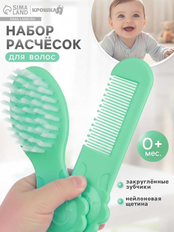 Расческа-щетка с мягкой щетиной и удобная расческа с закругленными зубчиками предназначены для малышей с первых дней жизни.
