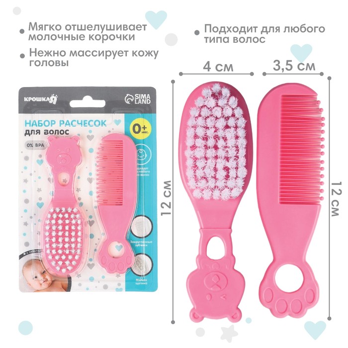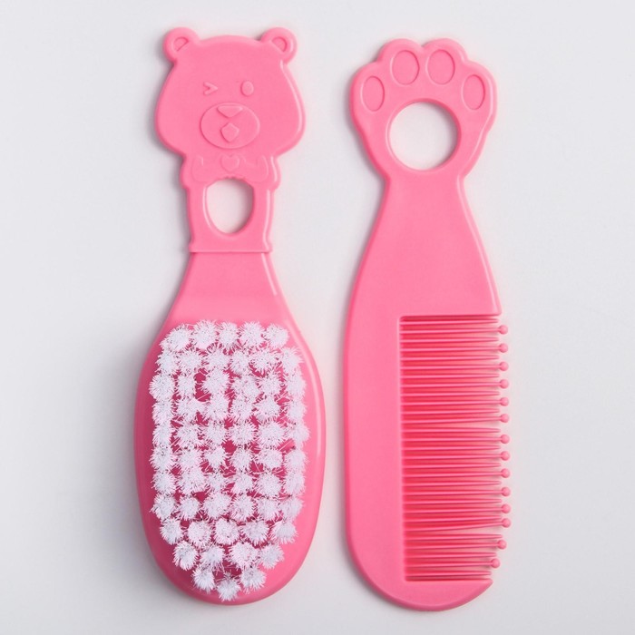 Расчёска детская, щётка для волос в наборе Крошка Я «Мишка», розовый