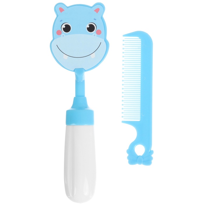 Расчёска детская, щётка для волос в наборе с погремушкой «Бегемотик»