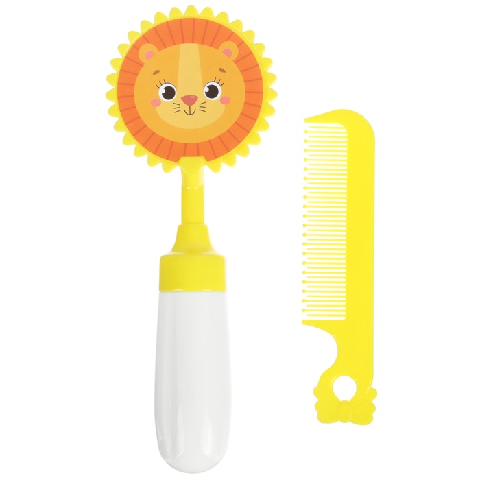 Расчёска детская, щётка для волос в наборе с погремушкой «Львёнок»