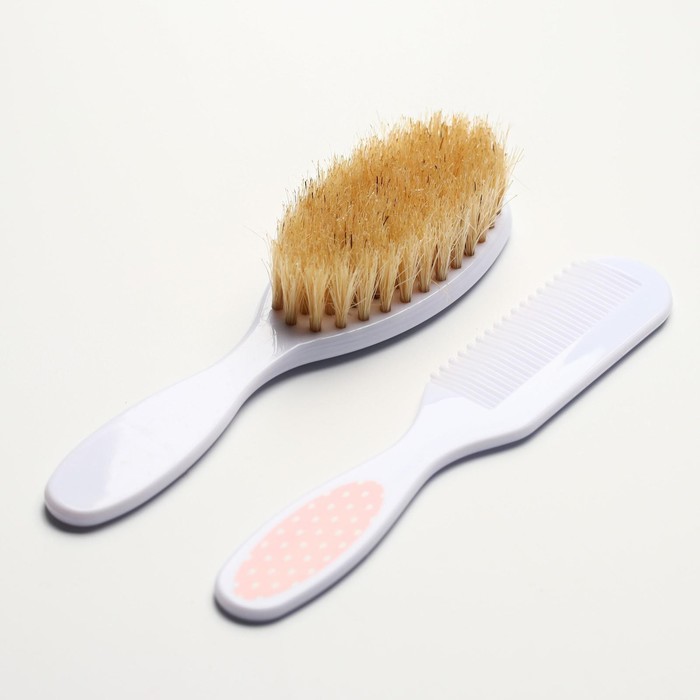 Расческа-щетка с мягкой, натуральной щетиной и удобная расческа с закругленными зубчиками предназначены для малышей с первых дней жизни. Мягкая пушистая щетка имеет удобную эргономичную ручку, улучшает кровообращение кожи головы, не царапая её. Нежный массаж расслабляет и успокаивает перед сном, а стимуляция волосяных луковиц ускоряет рост первых волос малыша. Щетка с мягким ворсом позволит пригладить волосики и придать им аккуратный вид. А с помощью расчески с частыми закругленными зубчиками удобно расчесывать запутавшиеся и скатавшиеся волосы. Изделия изготовлены из безопасного материала - не содержат бисфенол А.