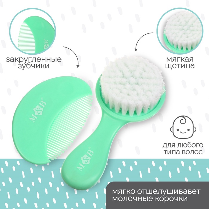 Расческа-щетка с мягкой щетиной и удобная расческа с закругленными зубчиками предназначены для малышей с первых дней жизни.