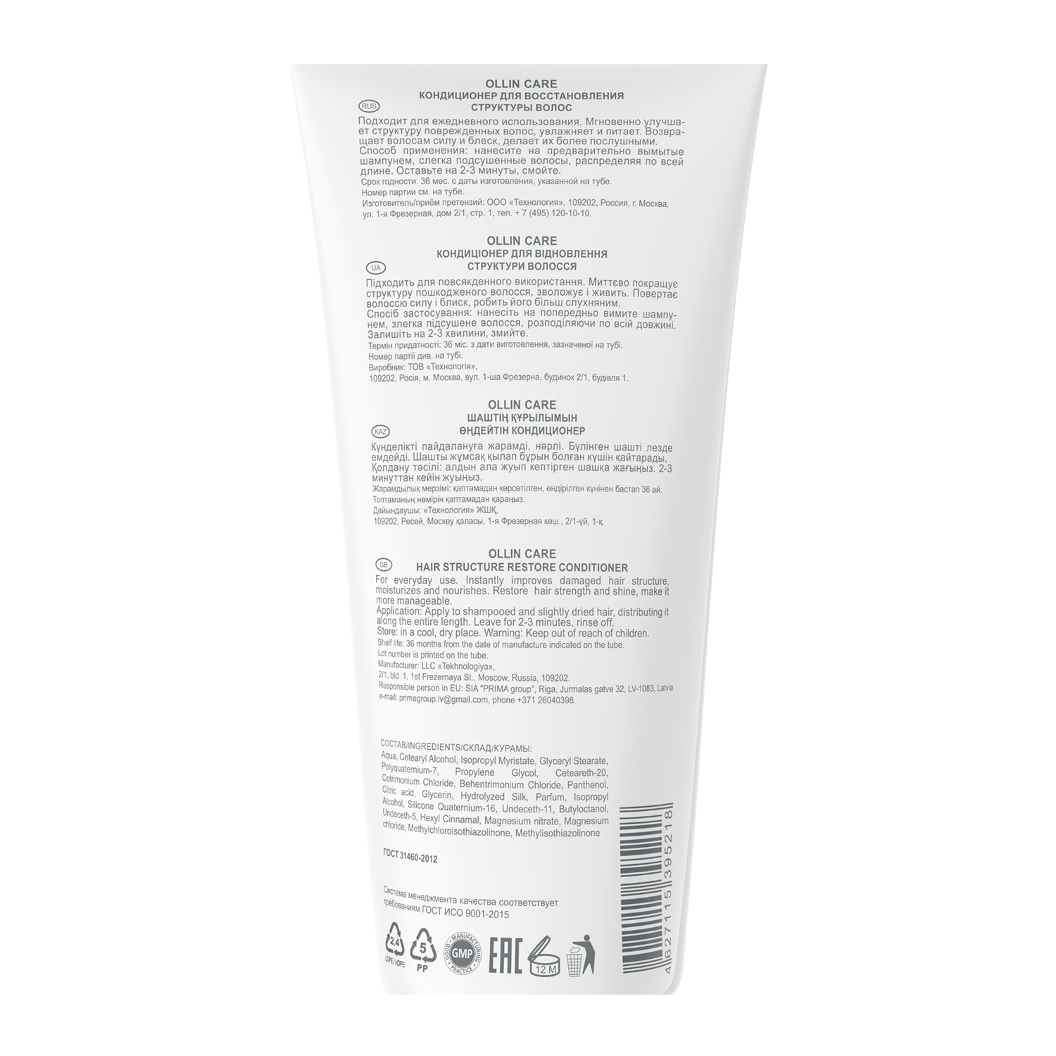OLLIN PROFESSIONAL ( Оллин профессионал ) Кондиционер для восстановления структуры волос Care от известного российского бренда OLLIN Professional. Использование кондиционера поможет мягко восстановить волосы, делая их более гладкими и ухоженными. Воздействует мягко, бережно защищает волосы. Мгновенно восстанавливает и питает поврежденные волосы. Укрепляет, придает невероятную мягкость и блеск.
