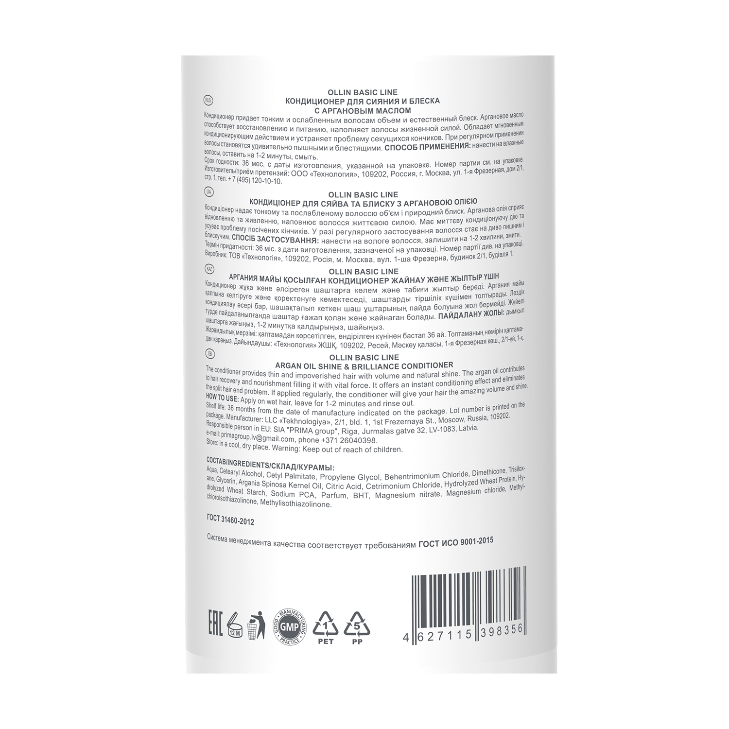 OLLIN Кондиционер с аргановым маслом для сияния и блеска волос / BASIC LINE 750 мл