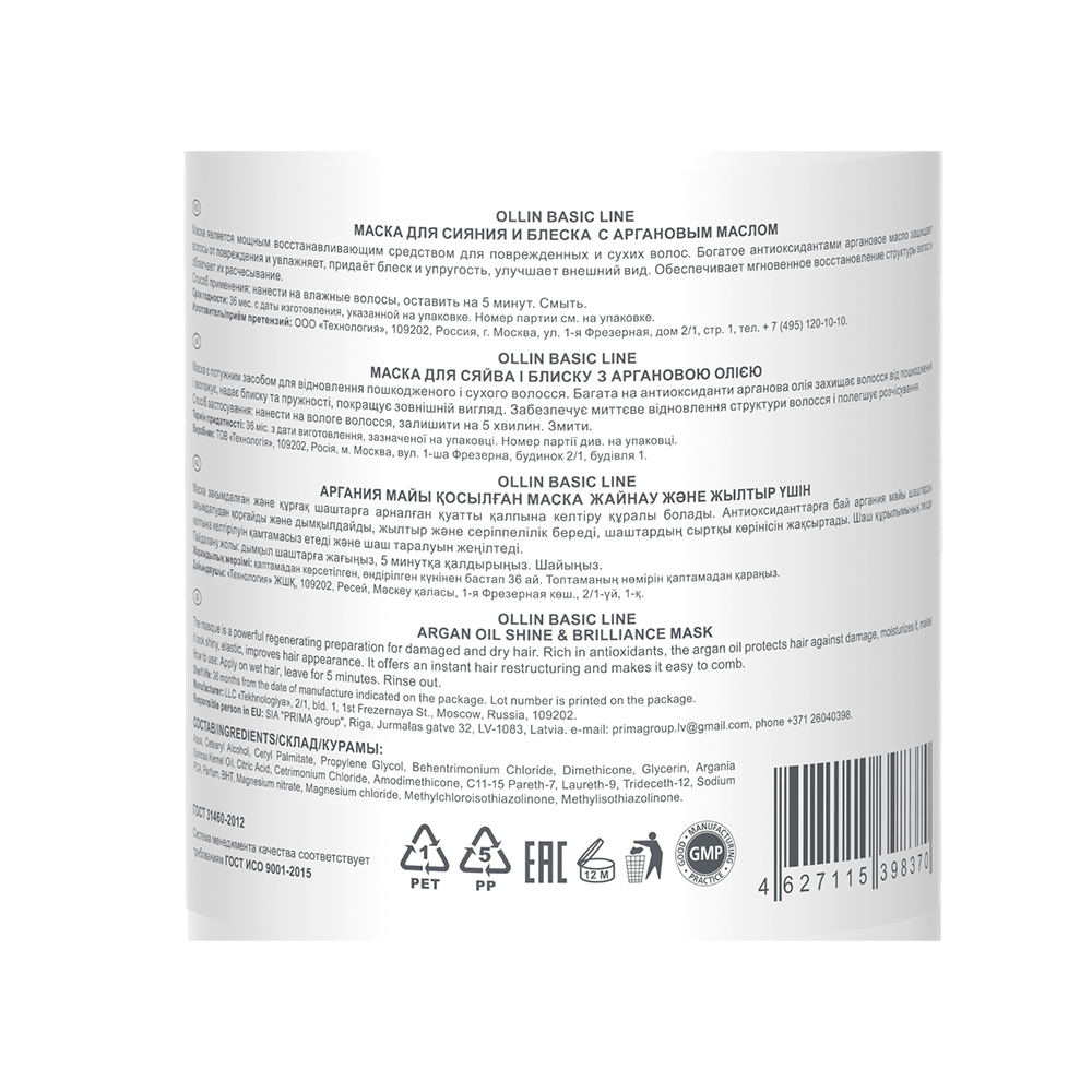 OLLIN PROFESSIONAL ( Оллин профессионал ) Маска является мощным восстанавливающим средством для поврежденных и сухих волос. Богатое антиоксидантами аргановое масло защищает волосы от повреждения и увлажняет, придает блеск и упругость, улучшает внешний вид. Обеспечивает мгновенное восстановление структуры волос и облегчает их расчесывание.