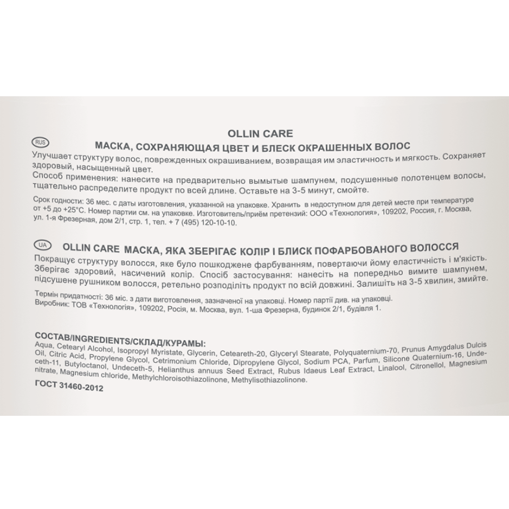 OLLIN Маска сохраняющая цвет и блеск окрашенных волос / Color & Shine Save Mask 500 мл