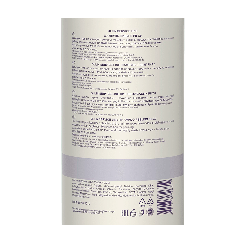 OLLIN PROFESSIONAL ( Оллин профессионал ) Шампунь-пилинг рН 7.0 Ollin shampoo-peeling является отличным средством для глубокого очищения волос и кожи головы, а также для удаления остатков продуктов стайлинга, а также для удаления излишков работы сальных желез. Кроме того, средство замечательно подходит для подготовки волос к процедуре химической завивки.