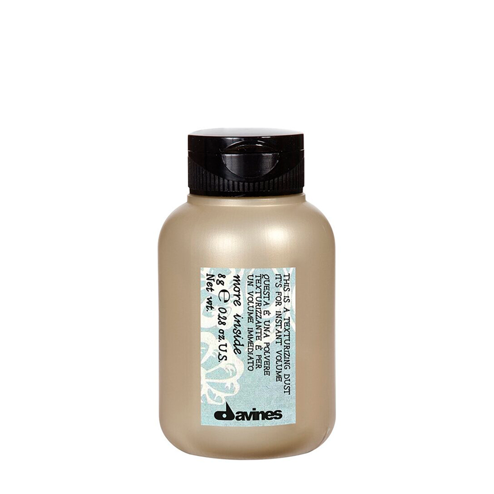 DAVINES SPA ( Давинес Спа ) Пудра-текстуризатор идеально подходит для создания долговременного объема и различных структурных текстур. Мгновенно придает объем у корней, не утяжеляет волосы. Становится невидимой после распределения по волосам. Контролирует текстуру волос. Формула с низким содержанием смол придает естественный объем без утяжеления. Можно использовать как отдельно, так и в сочетании с другими продуктами.