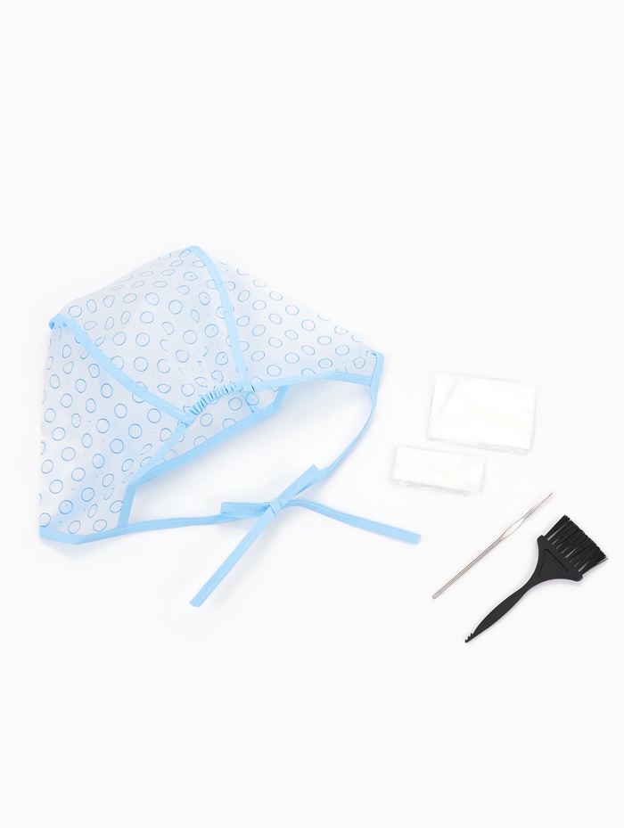 Набор идеально подойдет для окрашивания волос в домашних условиях. Состоит из 5 предметов - кисть, шапочка для мелирования, крючок, перчатки, пелерина. Кисть оснащена синтетической щетиной, ручка удлиненная, что позволяет окрашивать быстро и качественно. Шапочка для мелирования вместе с крючком помогут выделить необходимые пряди под окрашивание без затруднений. Перчатки защитят кожу рук от попадания краски и других составов на кожу. Пелерина обезопасит одежду.