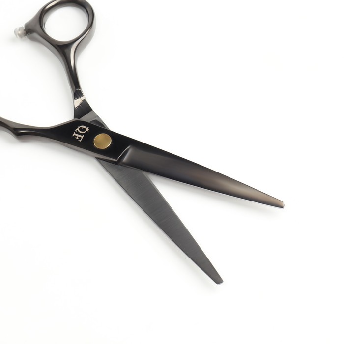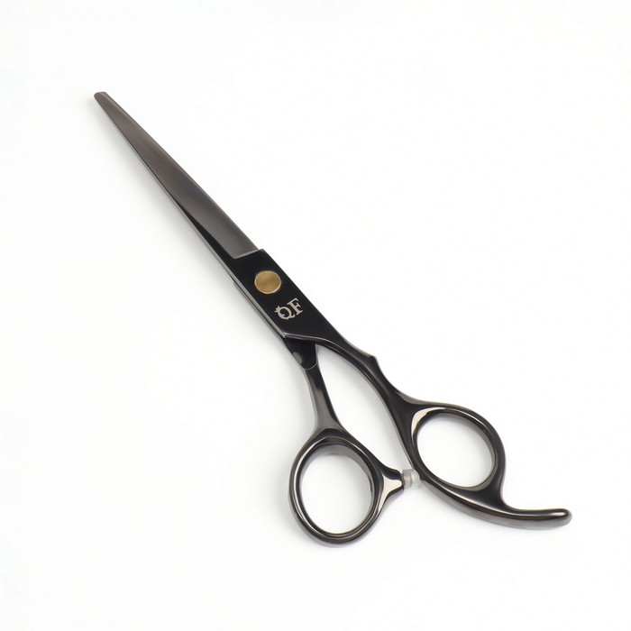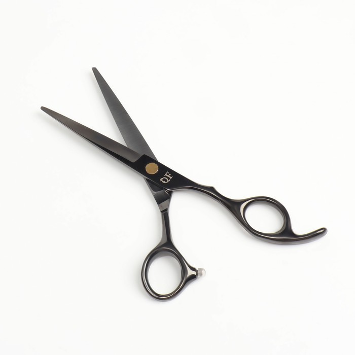 Ножницы парикмахерские с упором Premium, загнутые кольца, лезвие — 6.5 см, чёрные