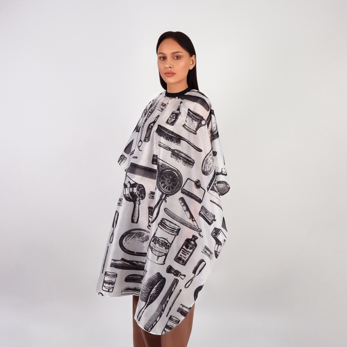 Пеньюар защитит одежду клиента от попадания волос, воды, краски и других составов. Он мягко обхватит шею без утяжеления. Универсальный размер подойдёт людям всех пропорций. Не использовать высокие температуры для разглаживания пеньюара. Рекомендуется использовать метод отпаривания.