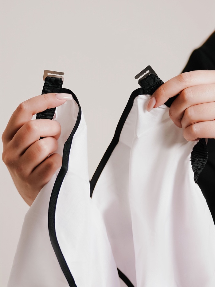 Пеньюар защитит одежду клиента от попадания волос, воды, краски и других составов. Он мягко обхватит шею без утяжеления. Универсальный размер подойдёт людям всех пропорций. Не использовать высокие температуры для разглаживания пеньюара. Рекомендуется использовать метод отпаривания.