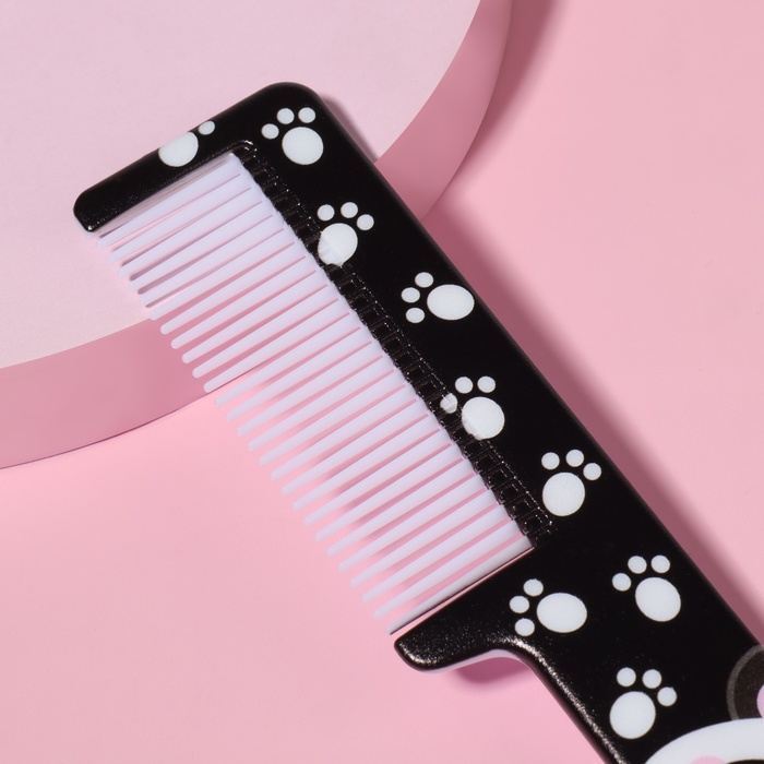 Испытай радость от ежедневного ухода за волосами с фигурной расчёской. Эта очаровательная чёрно-белая расчёска станет не только практичным инструментом для укладки, но и милым дополнением твоего повседневного образа. Изготовленная из качественного пластика, она обеспечивает мягкое расчёсывание, словно шелест листьев под лёгким ветерком.