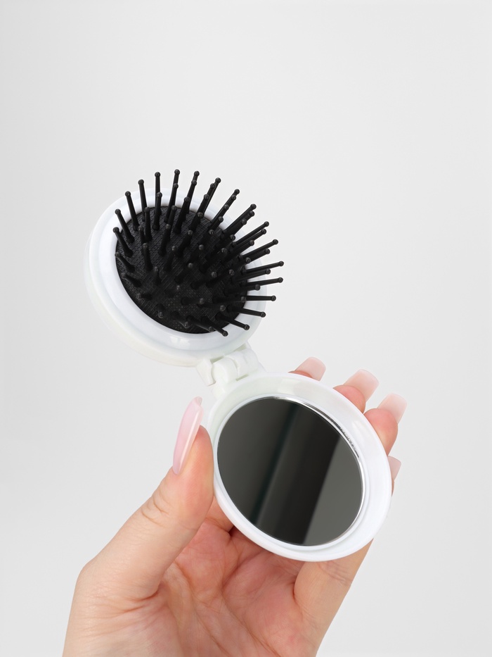 Создание идеального образа так же важно, как и его поддержание в течение всего дня. Воспользуйтесь этим удобным аксессуаром, чтобы за считанные секунды подправить макияж или причёску. Удобная форма и компактный размер расчёски позволят вместить её даже в самую миниатюрную сумочку, а крышка с зеркалом защитит подклад от случайной порчи.