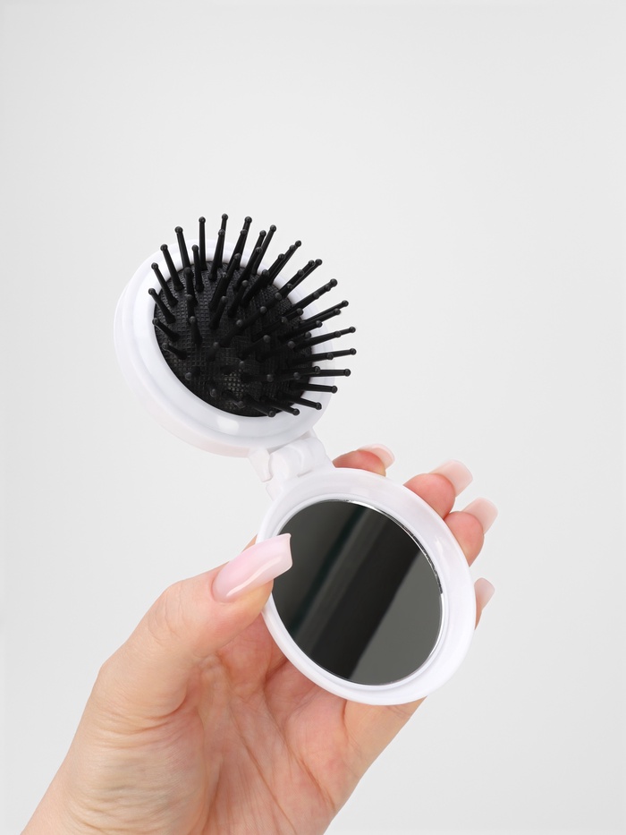 Создание идеального образа так же важно, как и его поддержание в течение всего дня. Воспользуйтесь этим удобным аксессуаром, чтобы за считанные секунды подправить макияж или причёску. Удобная форма и компактный размер расчёски позволят вместить её даже в самую миниатюрную сумочку, а крышка с зеркалом защитит подклад от случайной порчи.