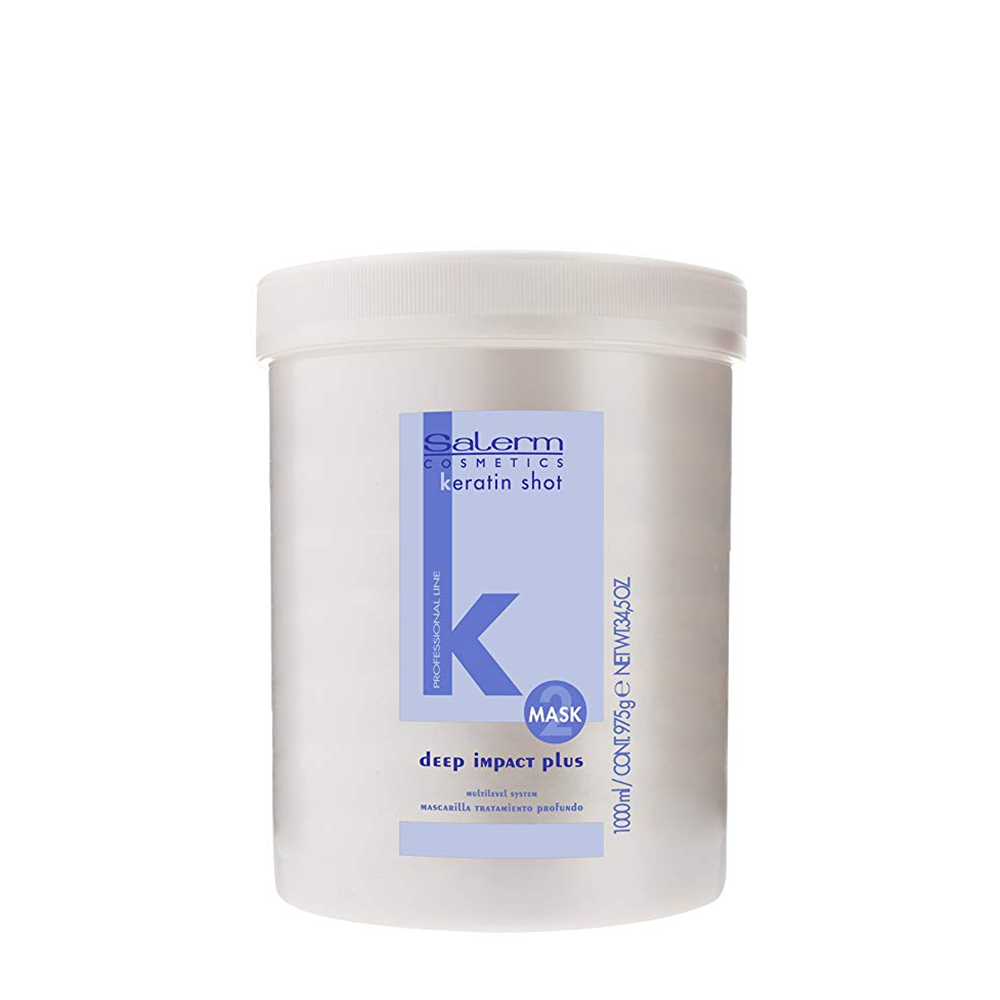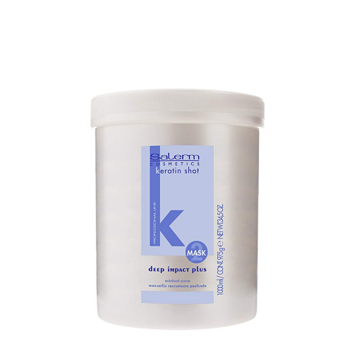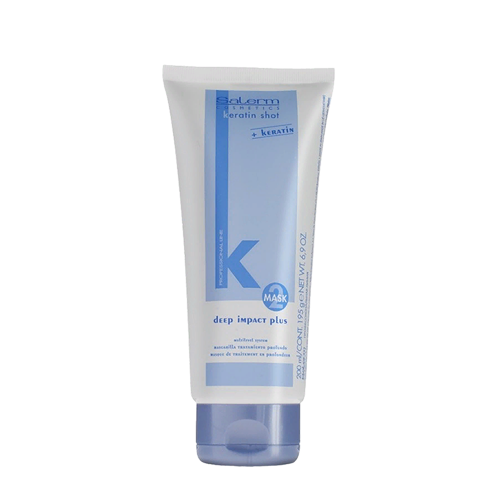 SALERM COSMETICS ( Салерм Косметикс ) Deep Impact Plus - это маска глубокого действия с эффектом ламинирования, которая помогает сохранять гладкость волос длительное время. Придает мягкость, блеск и восстанавливает структуру волос. Питает и укрепляет волосы, делает их послушными. Включает многоступенчатую систему реставрации Multilevel System, где на поверхности волоса действуют катионоактивные полимеры, в среднем слое - кератин и в самой глубине - протеины шелка. Масло ши (карите) дополнительно увлажняет волосы и сохраняет защитный липидный барьер на их поверхности. Используется для домашнего ухода после салонных процедур Keratin Shot и Absolute Straightener и как отдельный продукт для восстановления структуры волос.