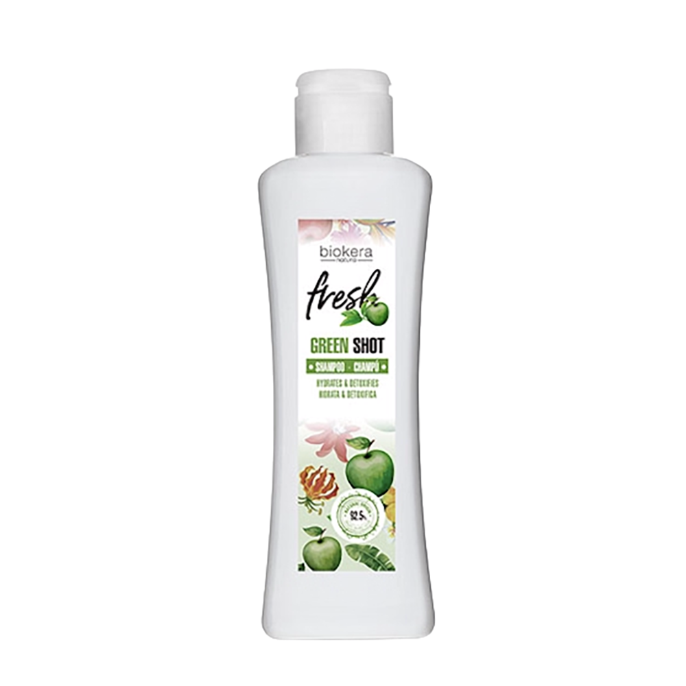 SALERM COSMETICS ( Салерм Косметикс ) Шампунь Green Shot Biokera глубоко увлажняет волосы, очищает и выводит токсины. Его формула, включает коктейль из отборных натуральных ингредиентов, обеспечивает ощущение максимальной свежести и придает волосам жизненную силу, чтобы вы могли наслаждаться ощущением чистоты и свежести ваших волос. Обладает потрясающим яблочным ароматом.