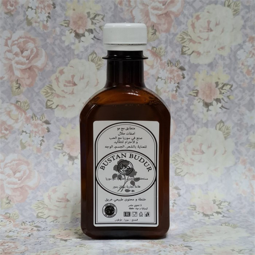 Состав: эмульсия из оливок сорта Абу-Саттл, жидкий экстракт ягод лавра Laurus nobilis, отвар листа череды Bidens, отвар сухой смеси из: яблока сирийского, сирийской груши, цветов апельсина, цветов хризантемы, цветов жасмина, цветов розы дамасской, цельного апельсина, цельного мандарина, листа кафир-лайма, цельное масло виноградных косточек, масло лесного ореха Corylus avellana, масло сирийской бесцветной хны Lawsōnia inērmis, выжимка массы цветков календулы Calendula officinalis, настой мякоти финика Phoenix dactylifera, масло семян и мякоти инжира Fícus cárica, масло черного тмина Nigēlla satīva, масло оливки зеленой, смола мирры оманской, камедь абрикосового дерева, камедь персика, камедь груши сирийской, камедь фисташкового дерева, красный мыльный корень (порошок), орехи шикакай (отвар).