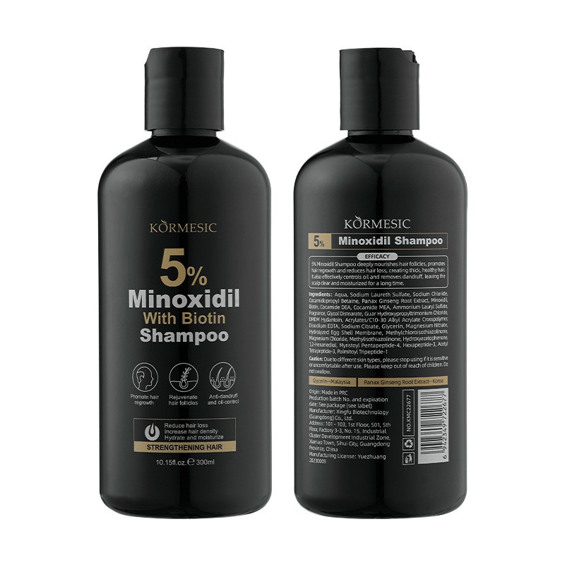 Активные компоненты: Миноксидил 5%, Биотин, экстракт Имбиря, экстракт Женьшеня, комплекс Пептидов.