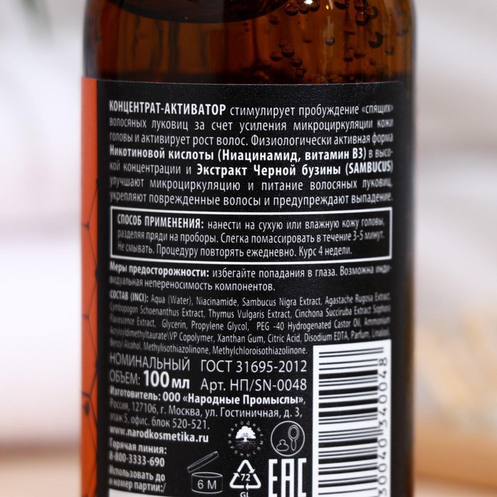 Концентрат-активатор помогает сделать волосы сильными и густыми легко и без дорогостоящих процедур. Высокая концентрация никотиновой кислоты и экстракта черной бузины стимулирует пробуждение «спящих» волосяных луковиц и усиливает микроциркуляцию крови в кожи головы, что ускоряет рост волос, укрепляет их, придает им густоту и жизненную силу.